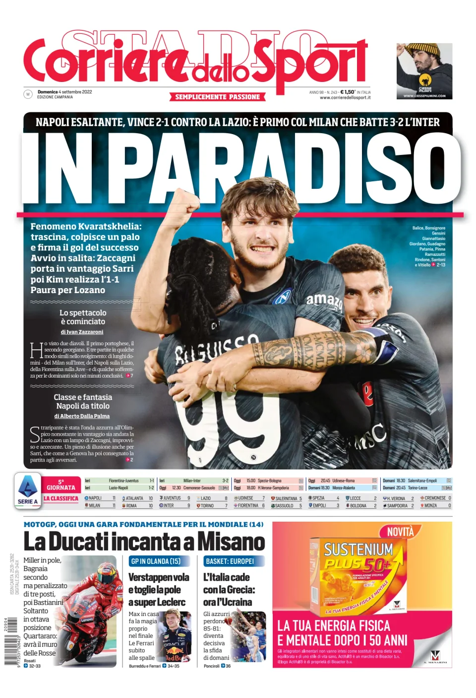 Rassegna Stampa Prima Pagina Corriere Dello Sport Campania 4 Settembre 2022 Napoligol It